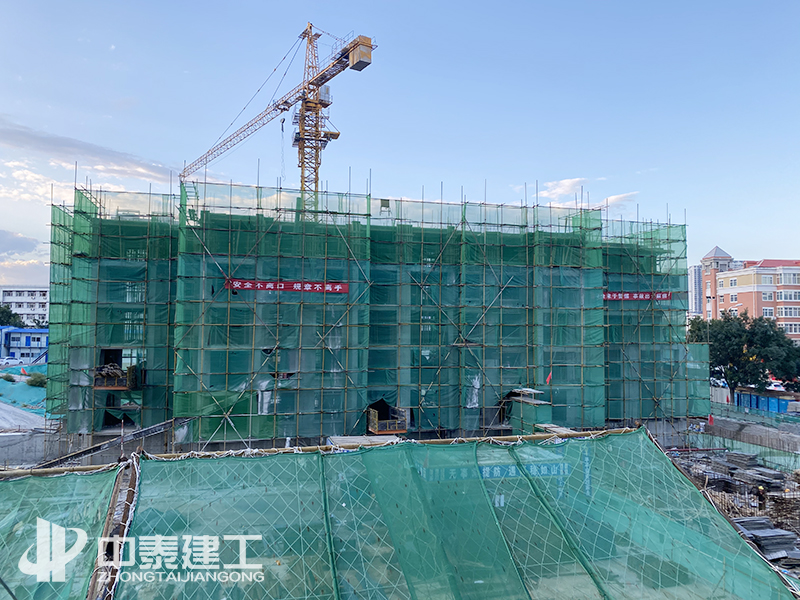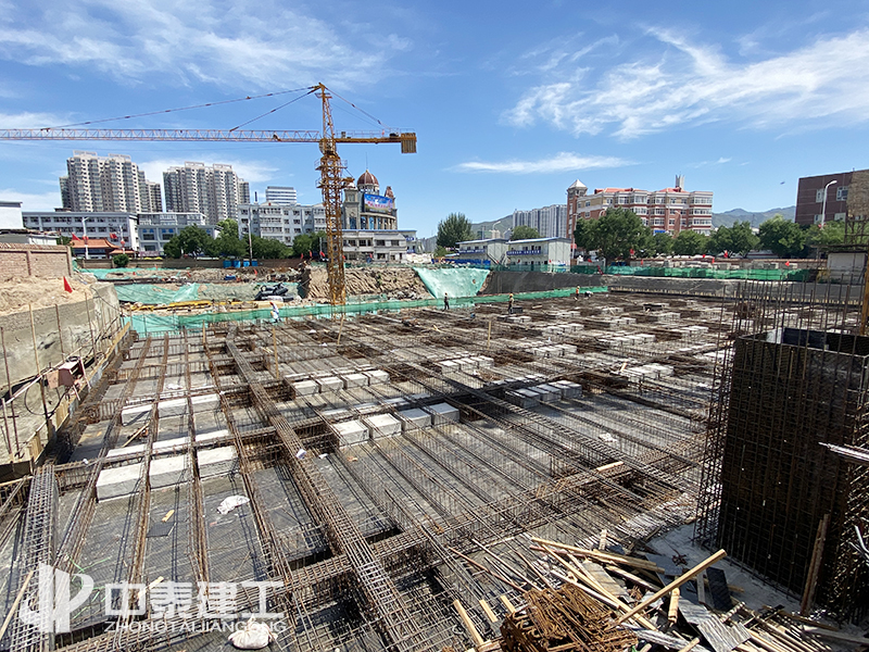 該項目于2019年10月25日開工進場,經(jīng)過前期的不懈努力,順利完成基槽平整,以及釬探工作,并且在寒冬來臨之前,順利完成1#樓筏板的澆筑。2020年4月初,面對嚴峻的疫情挑戰(zhàn),中泰建工認真落實疫情防控,積極配合建設單位以及各政府部門完成檢查,確保達到疫情恢復施工要求,順利恢復施工,2020年6月17日全部完成1#樓正負零以下的地下主體工程。